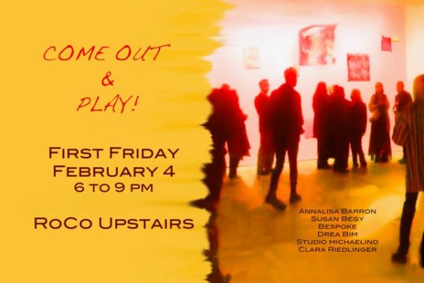 RoCo Upstairs will be open for First Friday with new work by studio artists: Annalisa Barron Su Begy Drea Bim Clara Riedlinger Studio Michaelino Enter through RoCo'southward main entrance. Normal gallery admission applies. Follow RoCo Upstairs: @RoCoUpstairs Additional hours past appointment. Contact each artist directly. Total list of Get-go Fri